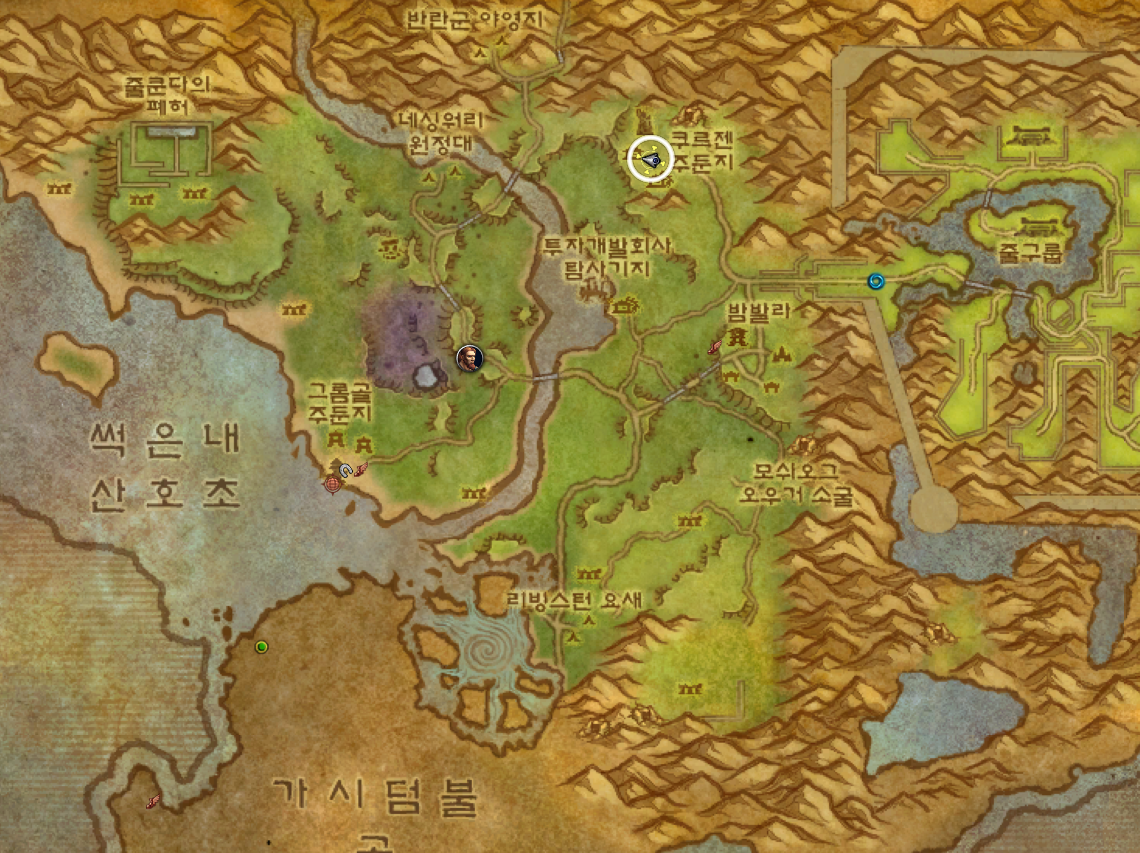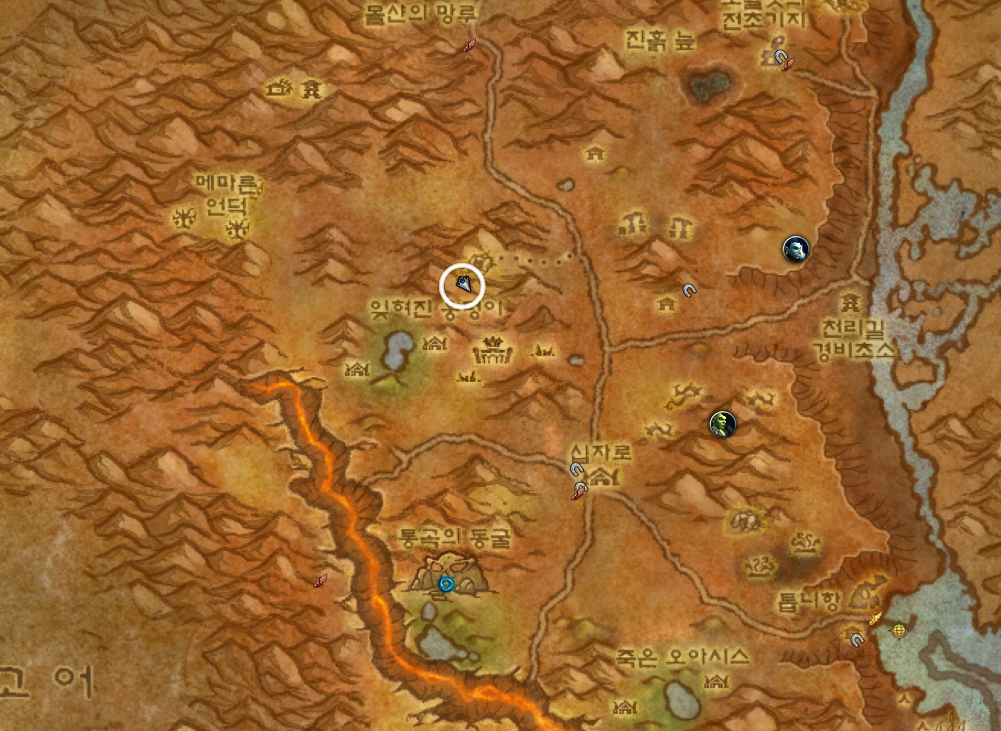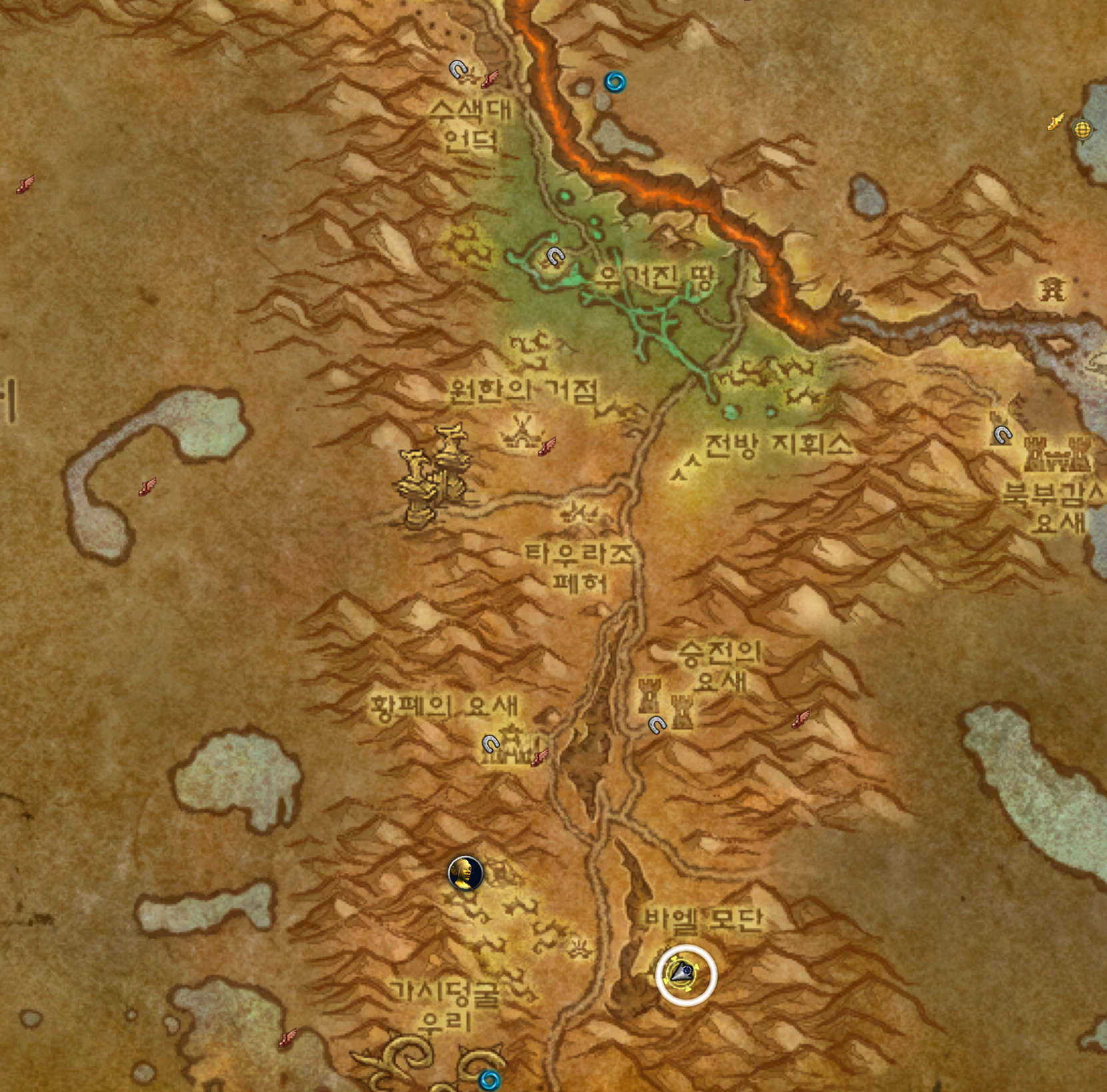 한국은 장미저택님이 올려주셧는데 아마도 불모의땅 깊은 곳 아래 뭐 이런거일것 같습니다.