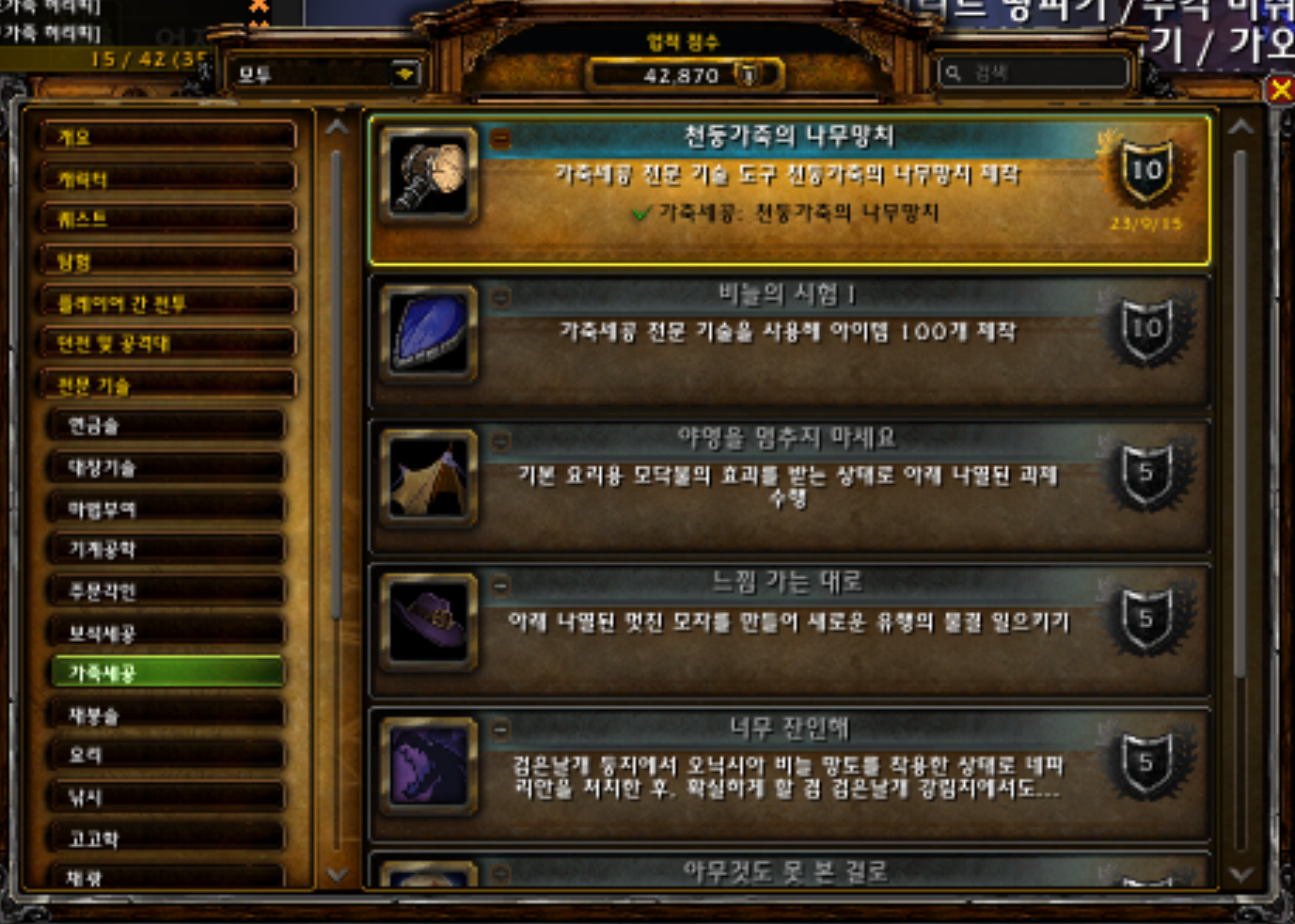 이웬의 마법막대는 격아확장팩 가죽세공으로 만드는 업적입니다.