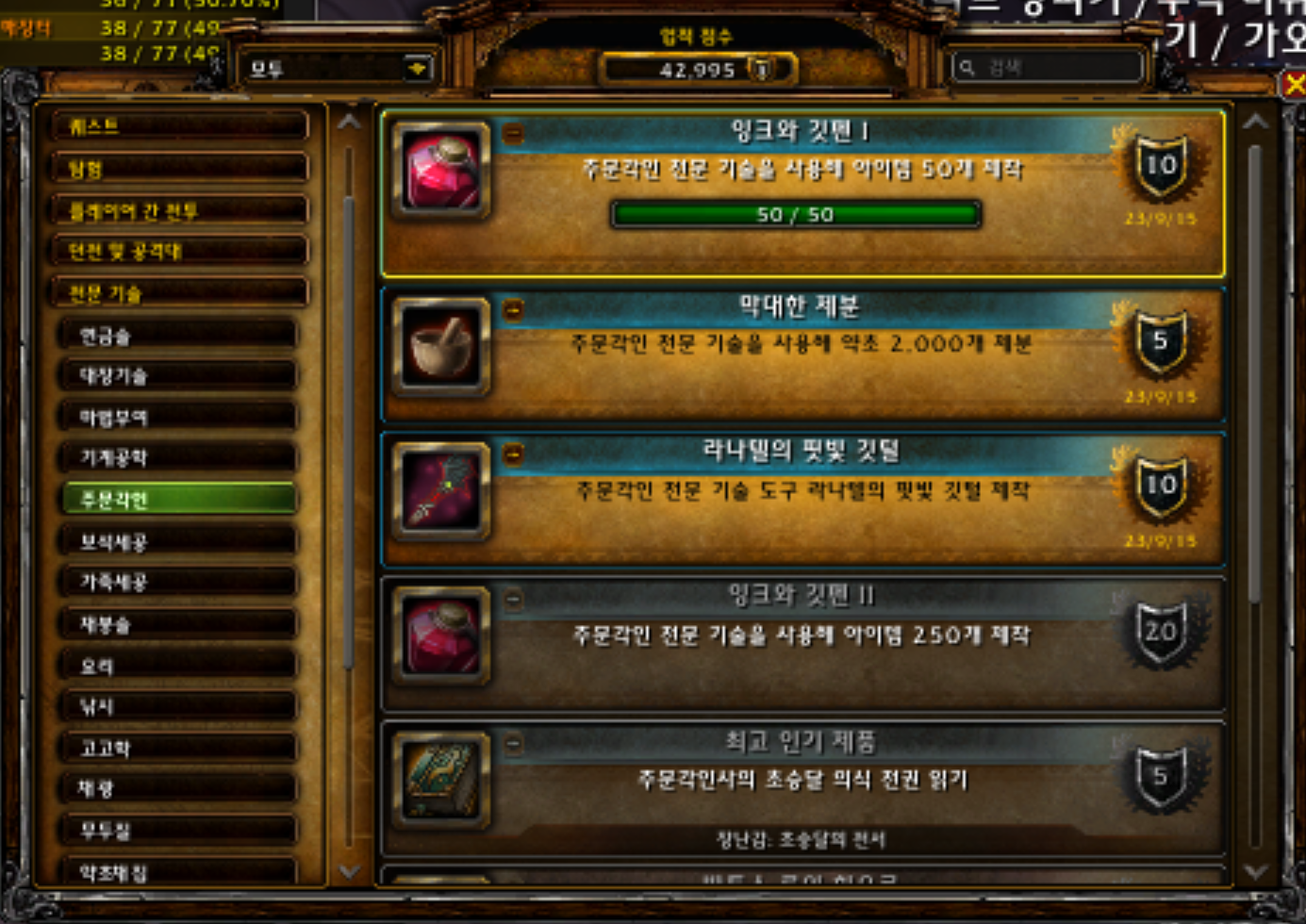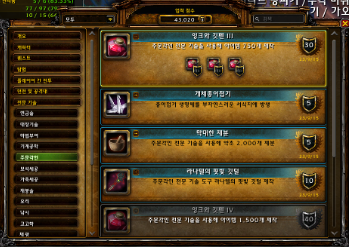 잉크와 깃펜 업적은 용군단 확장팩 업적으로 10.1.7에 추가된 업적입니다.
