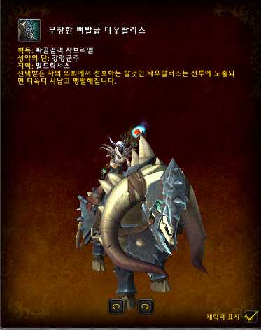 파골검객 사브리엘은 팝업이되면 누구나 잡을수 있지만 무장한 뼈발굽 타우랄러스는 오직 강령군주 성약단인 사람만 획득 가능합니다.