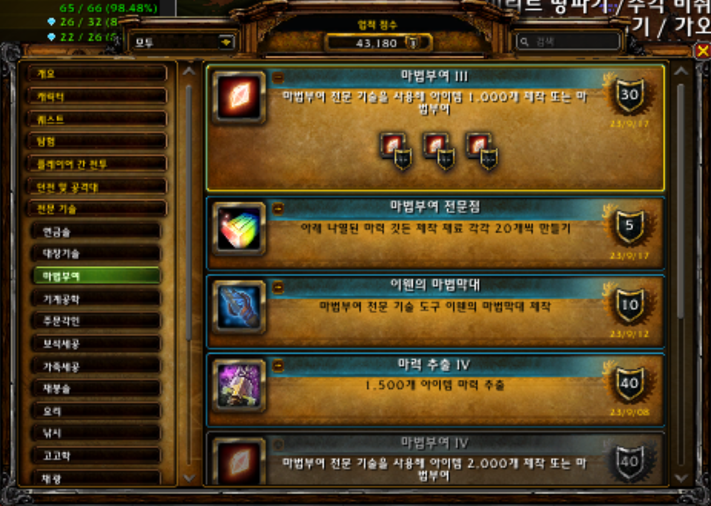 마법부여 업적은 용군단 확장팩 업적으로 10.1.7에 추가된 업적입니다.