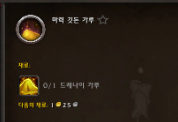 저는 마력 깃든 가루가 저렴해서 마력 깃든 가루로 하였습니다.