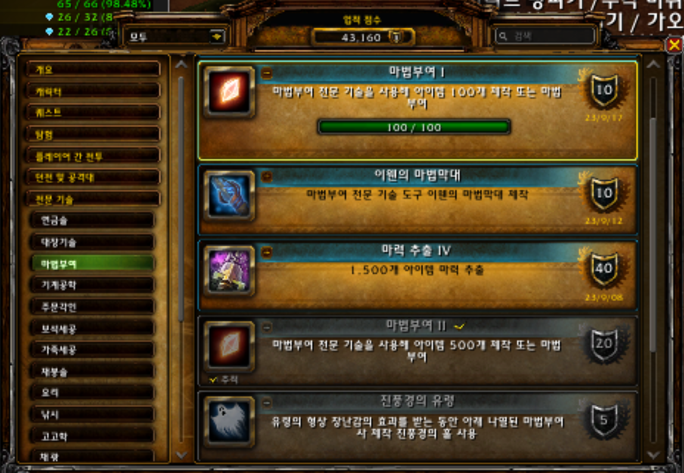 2023.09.17 마법부여I 획득 10점짜리 43160점