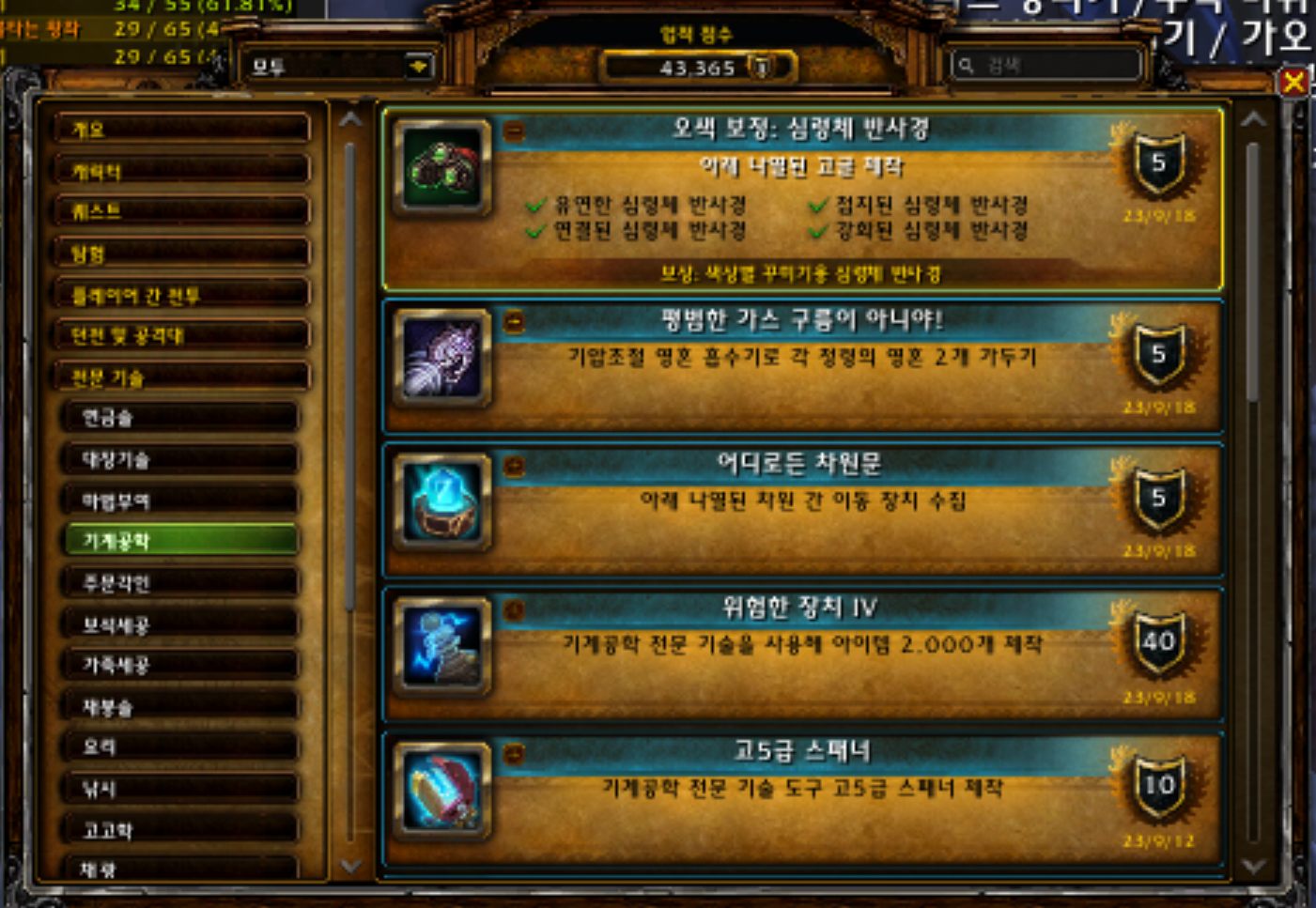 2023.09.18 오색 보정: 심령체 반사경 획득 5점짜리 43365점