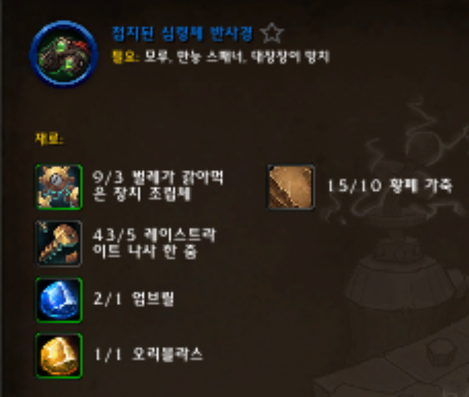 4개를 만드는 업적입니다. 전부다 어둠땅 기공으로 만드는 업적입니다.