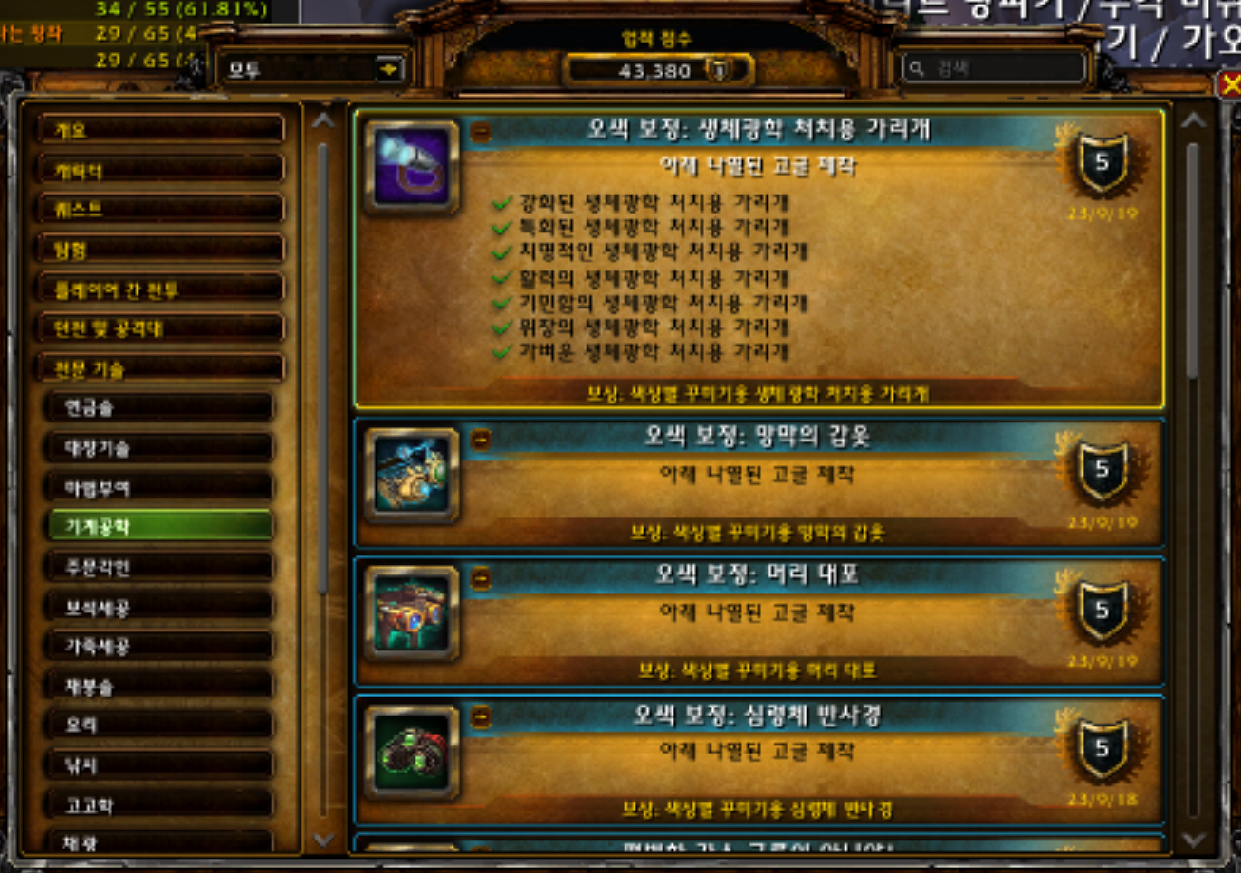 총 7개로 전부다 대격변 확장팩 기공으로 만듭니다.