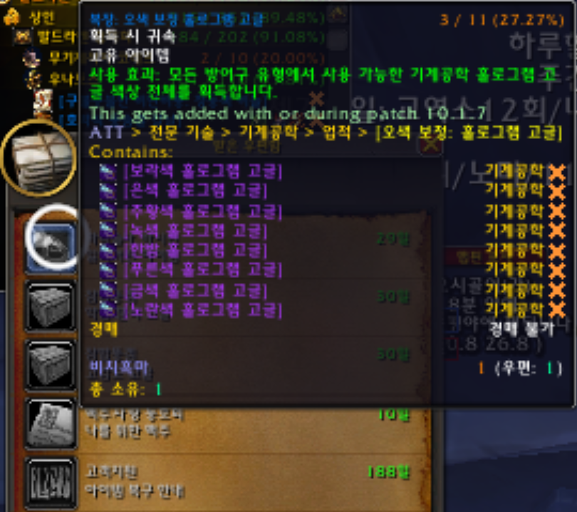 오색 보정: 홀로그램 고글업적은 용군단 확장팩 업적으로 10.1.7에 추가된 업적입니다.