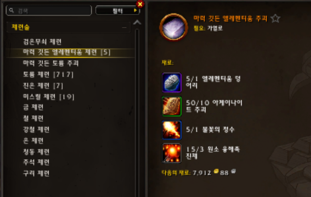 마력 깃든 엘레멘티움 주괴 도안을 먼저 먹어야 합니다.