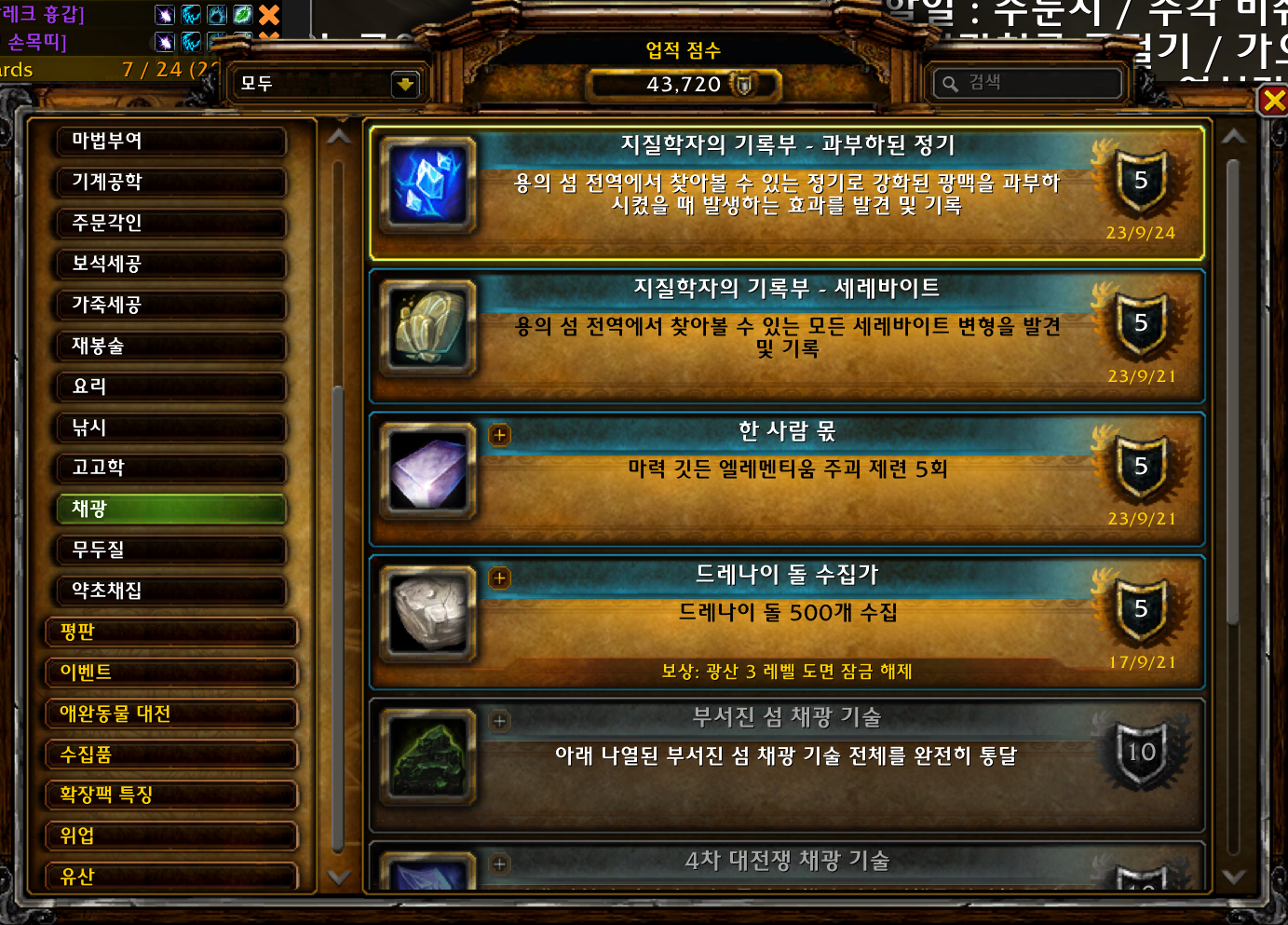 지질학자의 기록부 - 과부하된 정기업적은 용군단 확장팩 업적으로 10.1.7에 추가된 업적입니다.