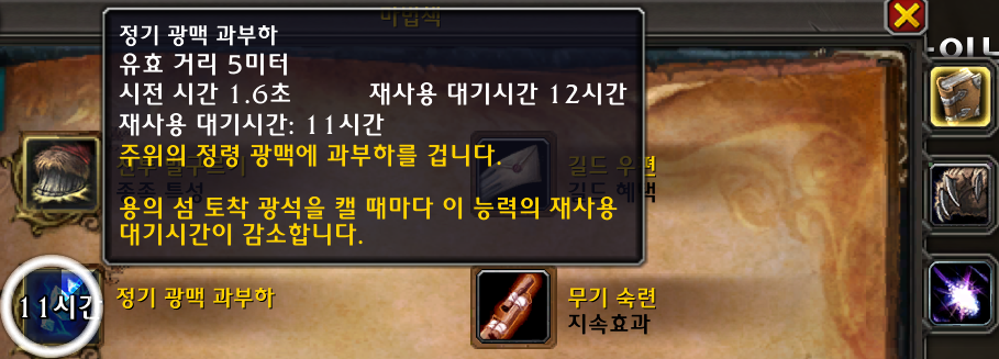 스킬창을 열면 정기 광맥 과부하라는 스킬이 있습니다.