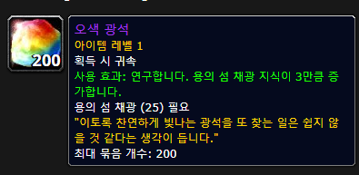 2023.09.24 지질학자의 기록부 - 드라코니움 획득 5점짜리 43725점 지질학자의 기록부 - 드라코니움 업적은 용군단 확장팩 업적으로 10.1.7에 추가된 업적입니다. 드라코니움을 종류별로 캐는 업적입