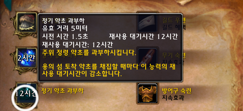 스킬창을 열면 정기 약초 과부하라는 스킬이 있습니다.