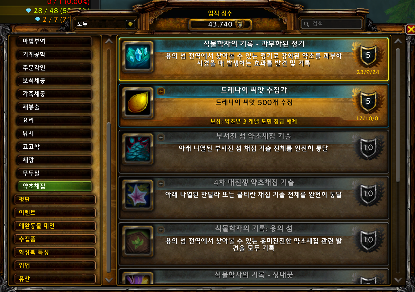 식물학자의 기록 - 과부하된 정기 업적은 용군단 확장팩 업적으로 10.1.7에 추가된 업적입니다.