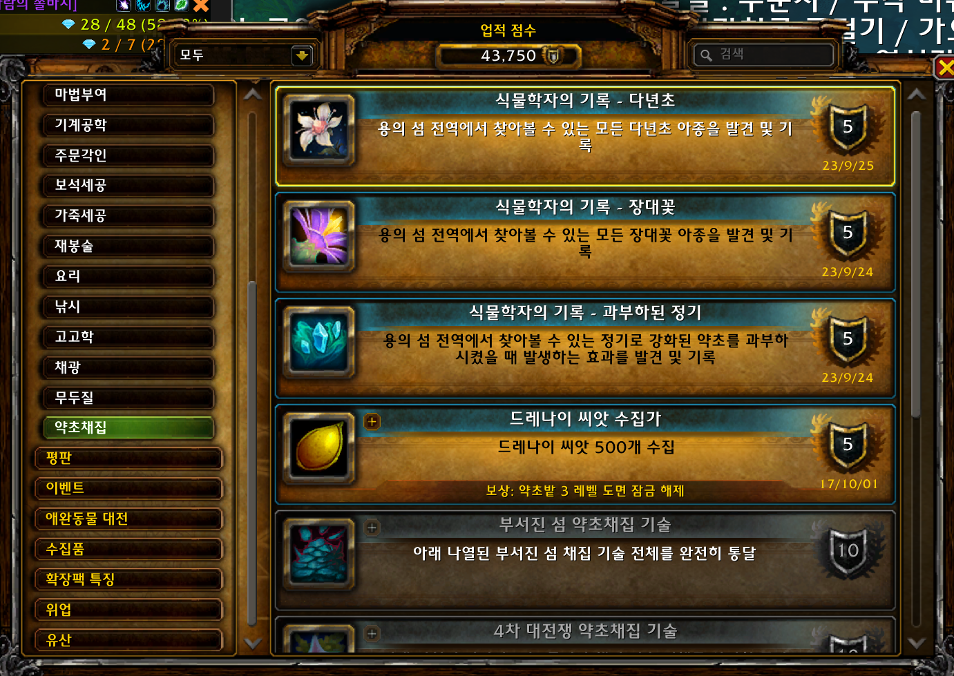 식물학자의 기록 - 다년초업적은 용군단 확장팩 업적으로 10.1.7에 추가된 업적입니다.