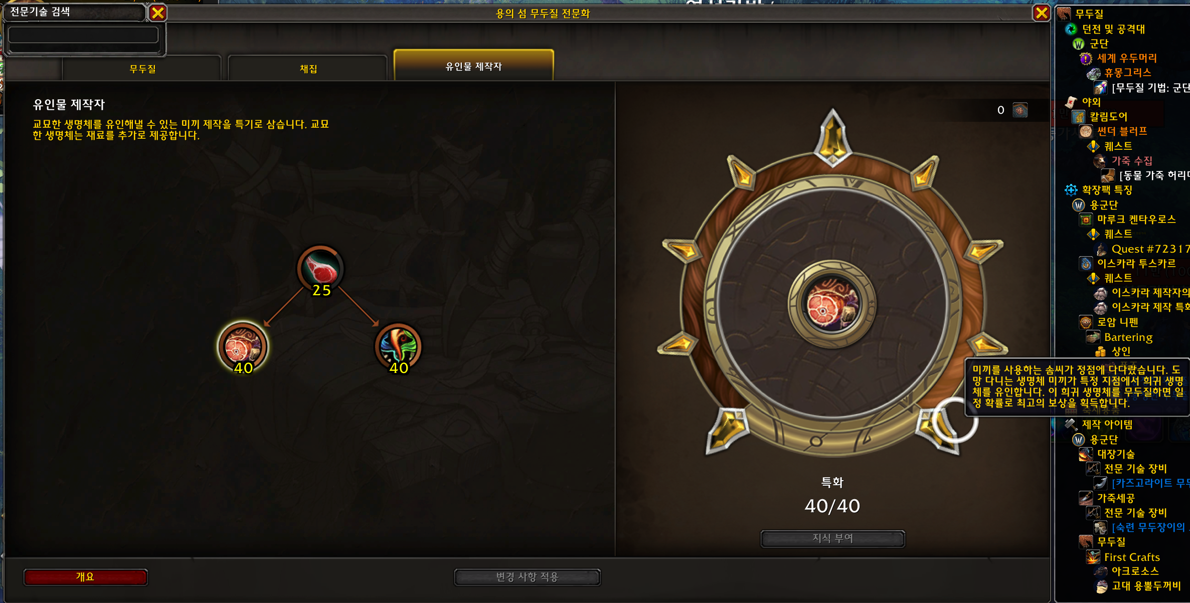 용의 섬의 교묘한 전설 업적은 유인물 제작자 - 특화에서 특화를 40포인트를 찍어야 합니다.