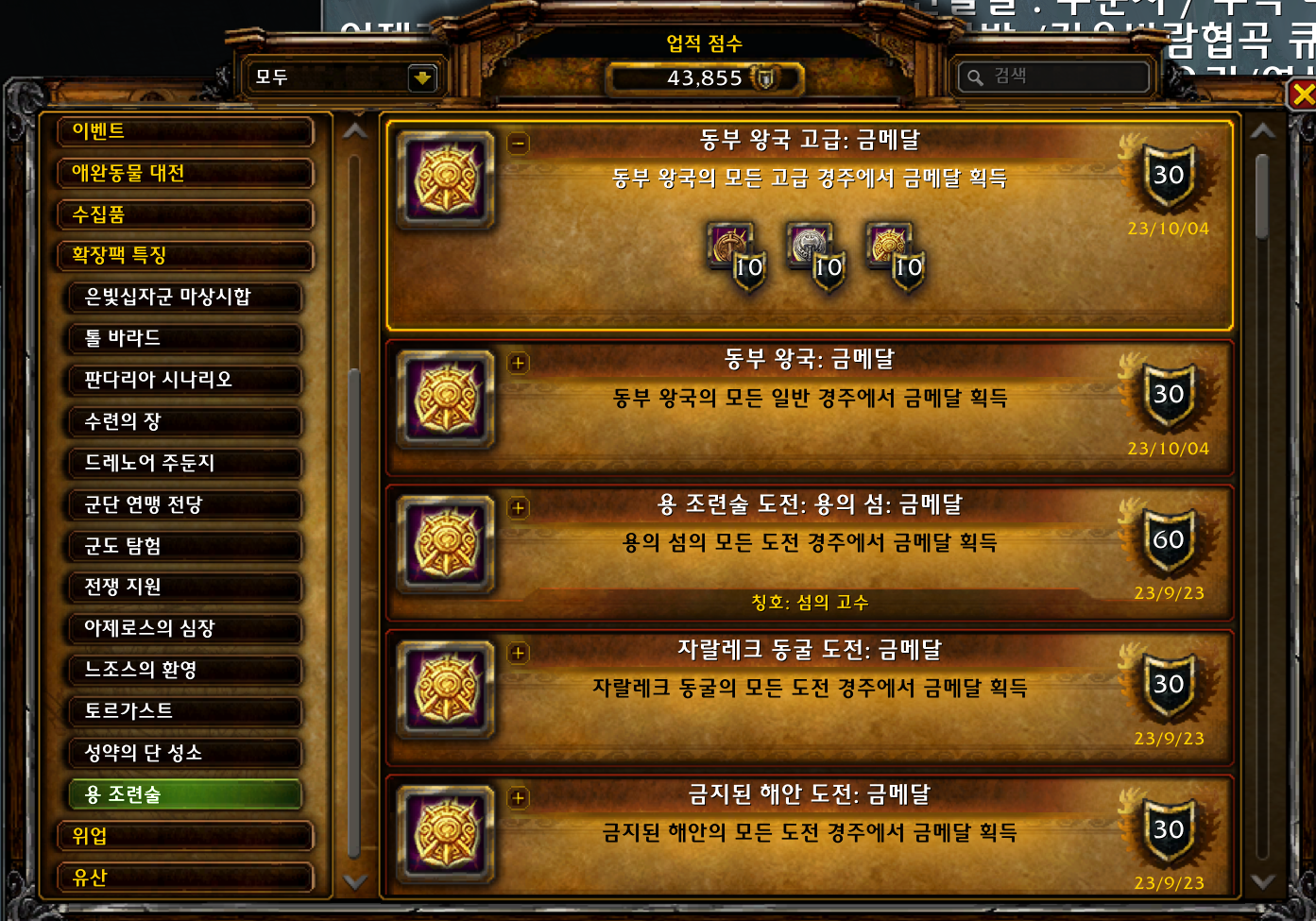 | [와우업적]동부 왕국 경주 완전 정복: 금메달 (0) | 2023.10.04 |