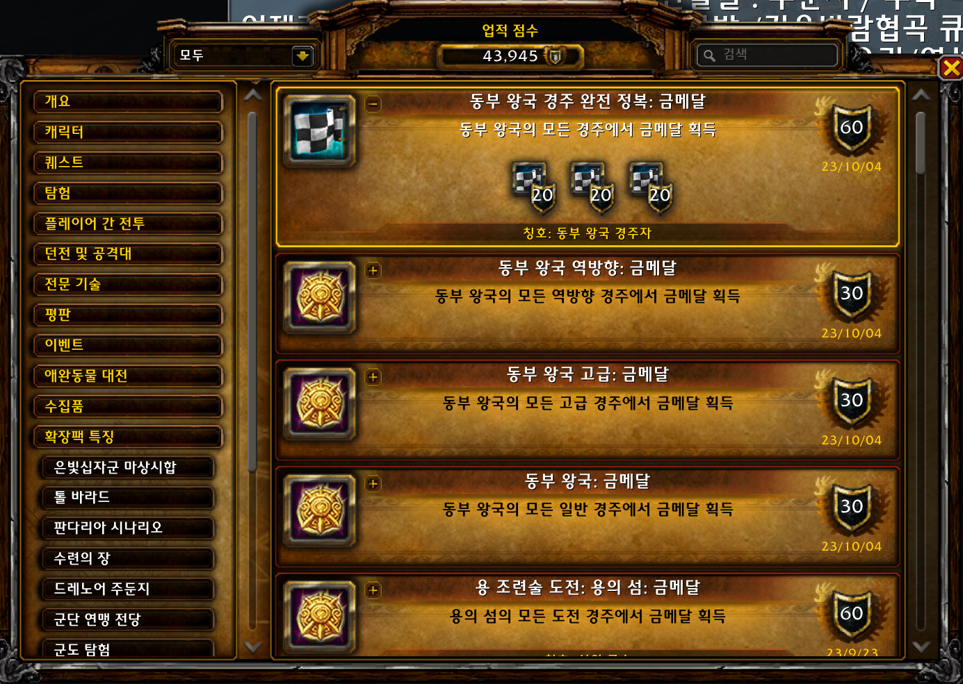 | [와우업적]동부 왕국 고급: 금메달 (0) | 2023.10.04 |