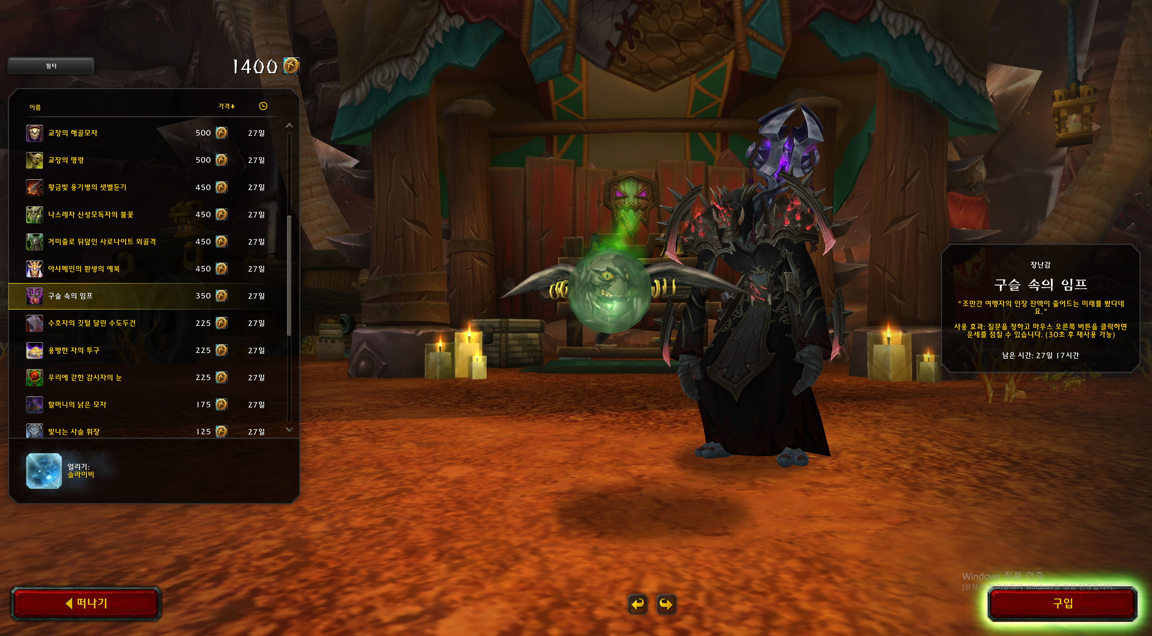 가격은 교역소 화폐 350개입니다.