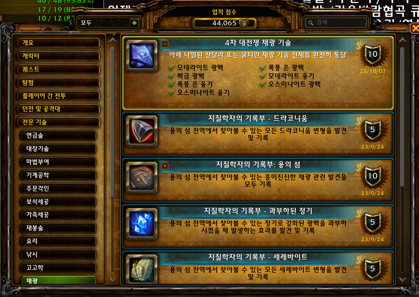 2023.10.07 4차 대전쟁 채광 기술 획득 10점짜리 44065점
