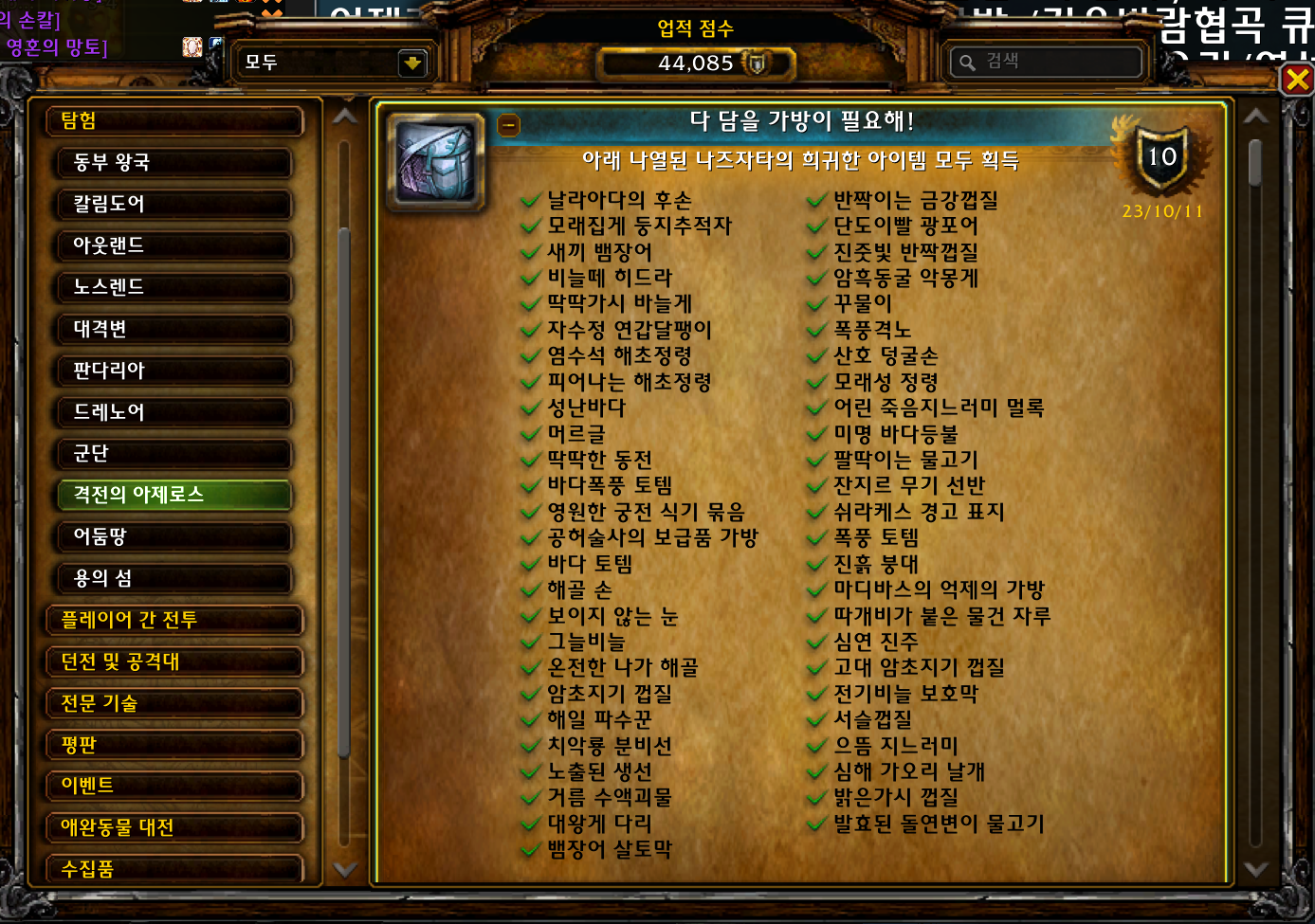 다 담을 가방이 필요해! 업적은 격아확장팩 업적으로 나즈자타에서 51개의 아이템을 획득하는 업적입니다.