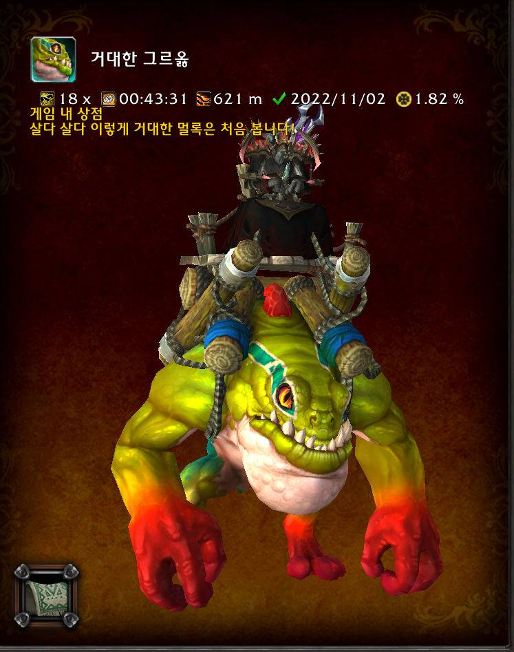 어마어마한 그르옳 탈것은 블리자드 샵에서 구매하는 탈것으로