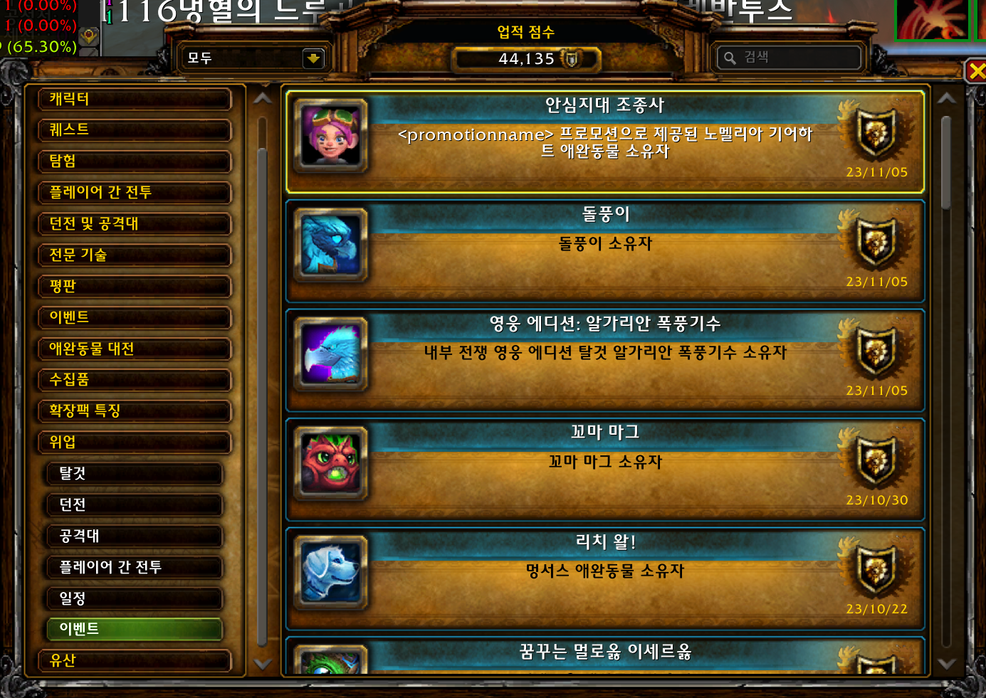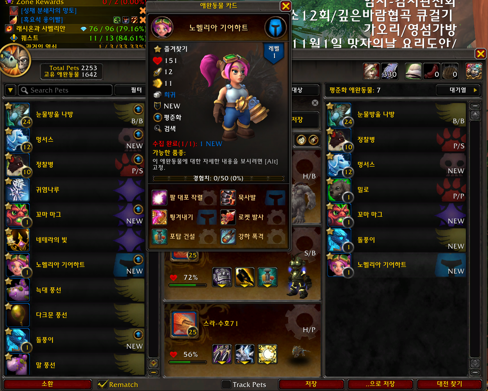 이런식으로 들창코까지 깨면 노멜리아 애완동물과 하스스톤 카드를 줍니다.