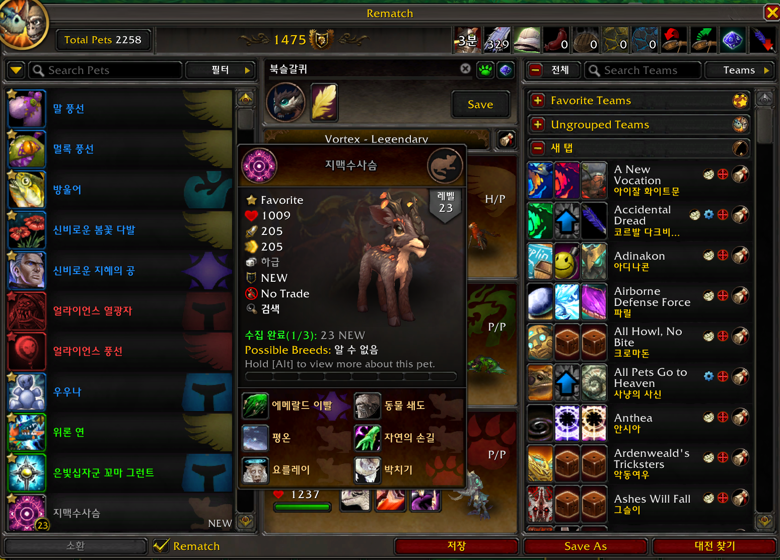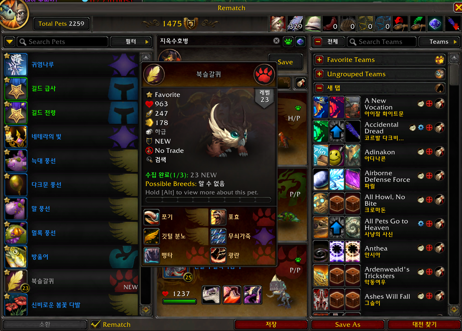 2023.11.11 북슬갈퀴 획득 1648번째 애완동물
