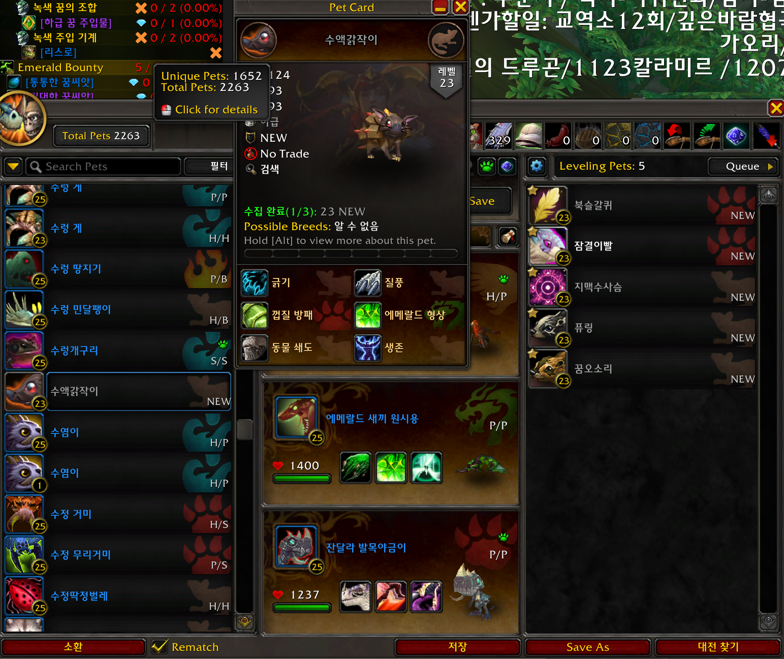 에메랄드의 꿈 사냥기업적은 에메랄드의 꿈 지역에 있는 애완동물을 수집하는 업적입니다.