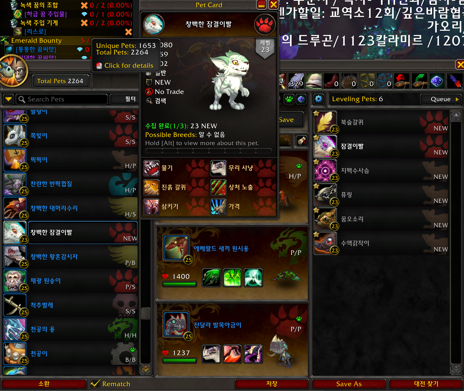 2023.11.11 창백한 잠결이빨 획득 1653번째 애완동물