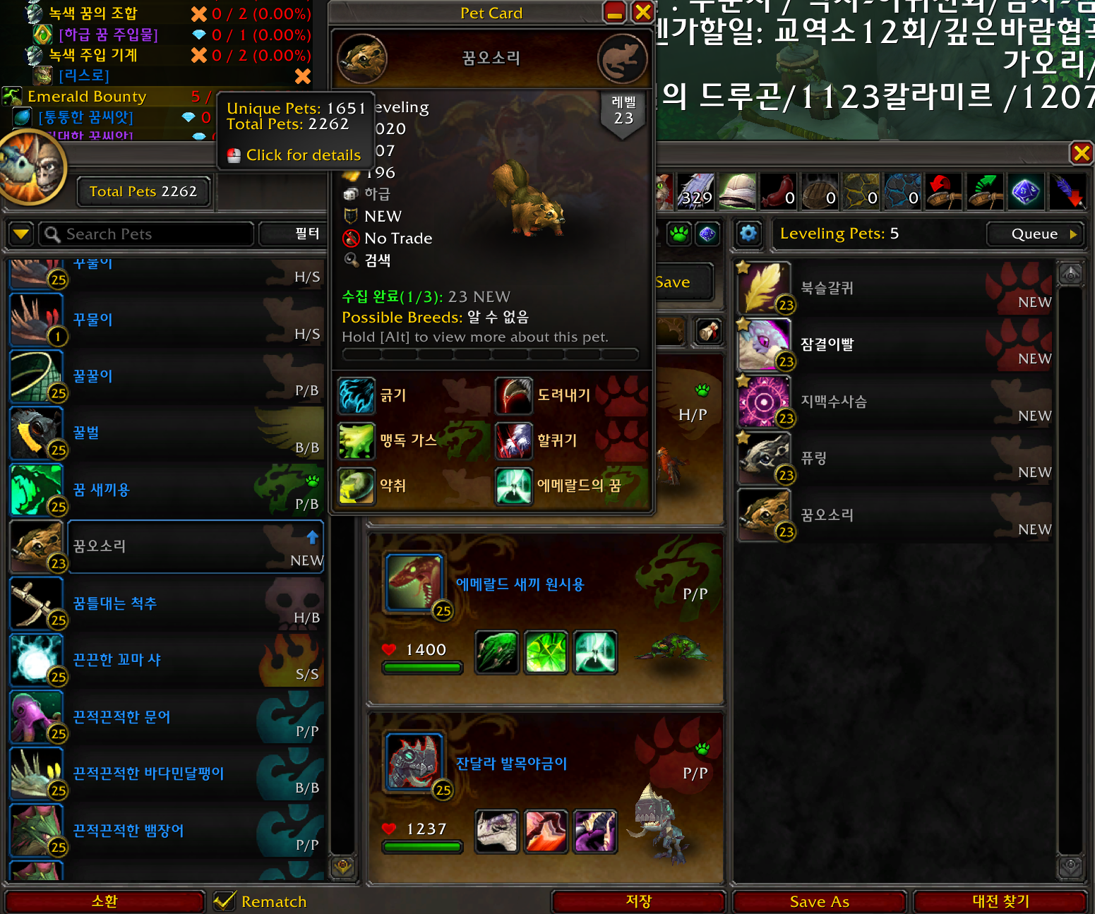 2023.11.11 꿈오소리 획득 1651번째 애완동물