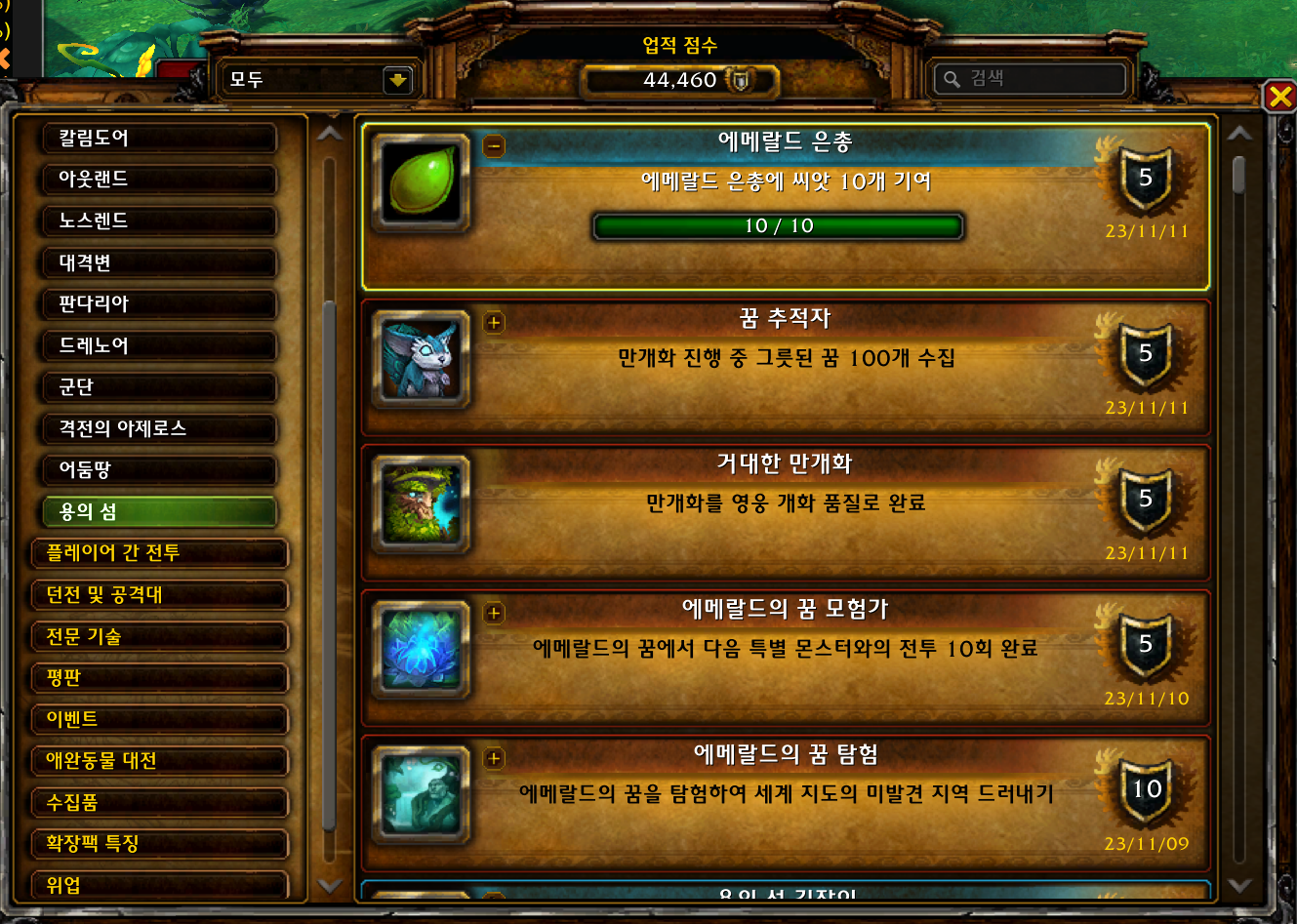 | [와우업적]에메랄드의 꿈 모험가 (1) | 2023.11.10 |