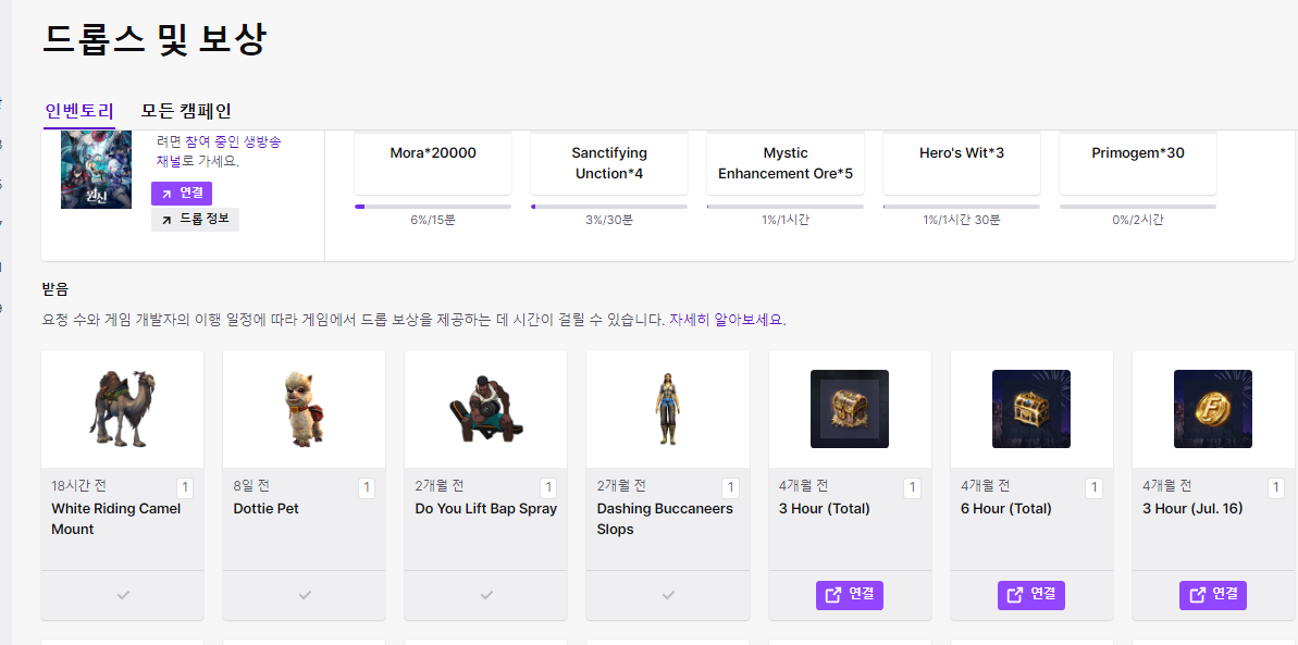 트위치 드롭스라고 쓰여있는 아무방이나 들어가서 4시간 시청한뒤에