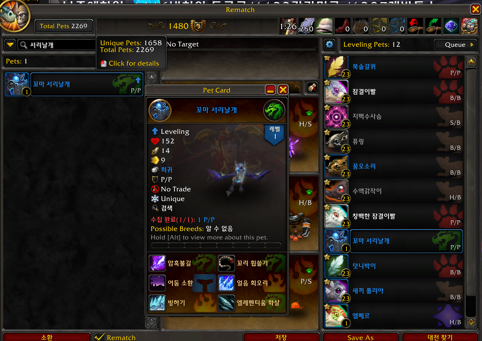 2023.11.22 꼬마 서리날개 획득 1658번째 애완동물