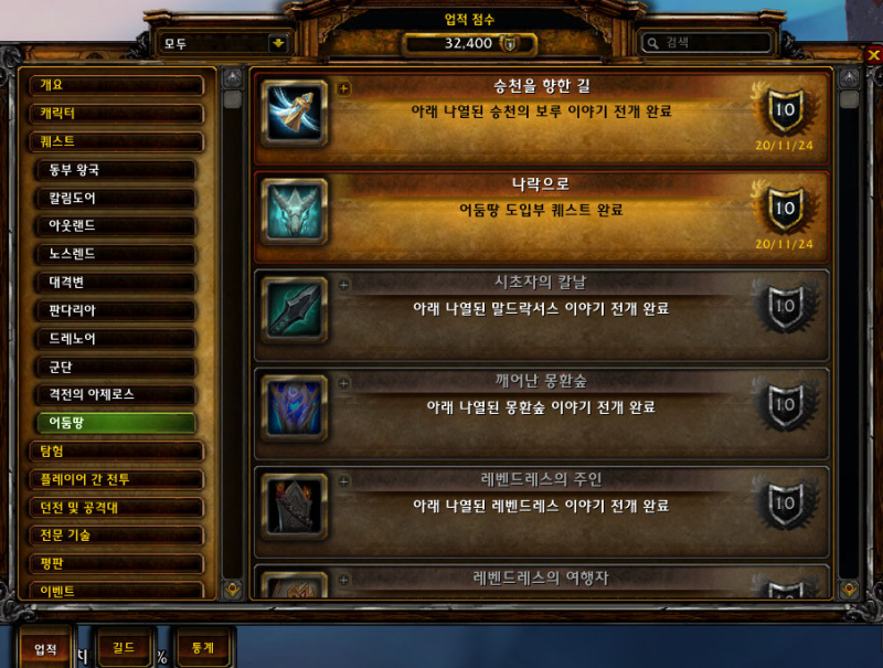 승천의보루 지역을 완료하고 말드락서스로 이동하려고하면 업적이 완료됩니다.