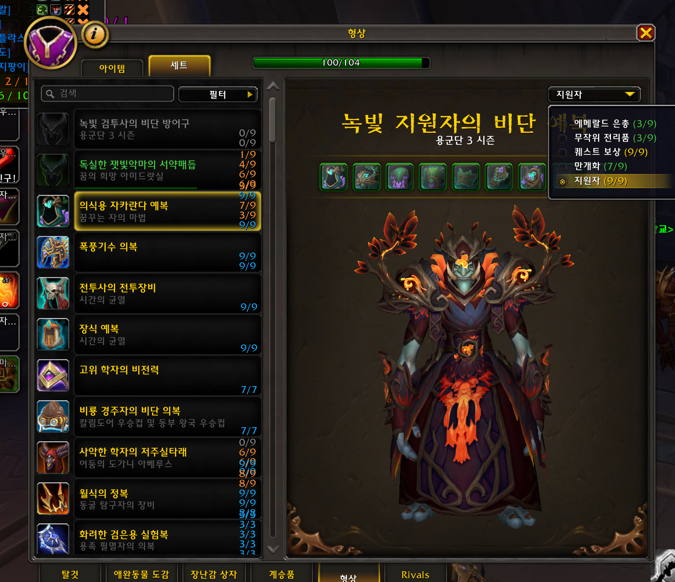 형상탭에서 용군단3시즌 세트를완성하면됩니다.