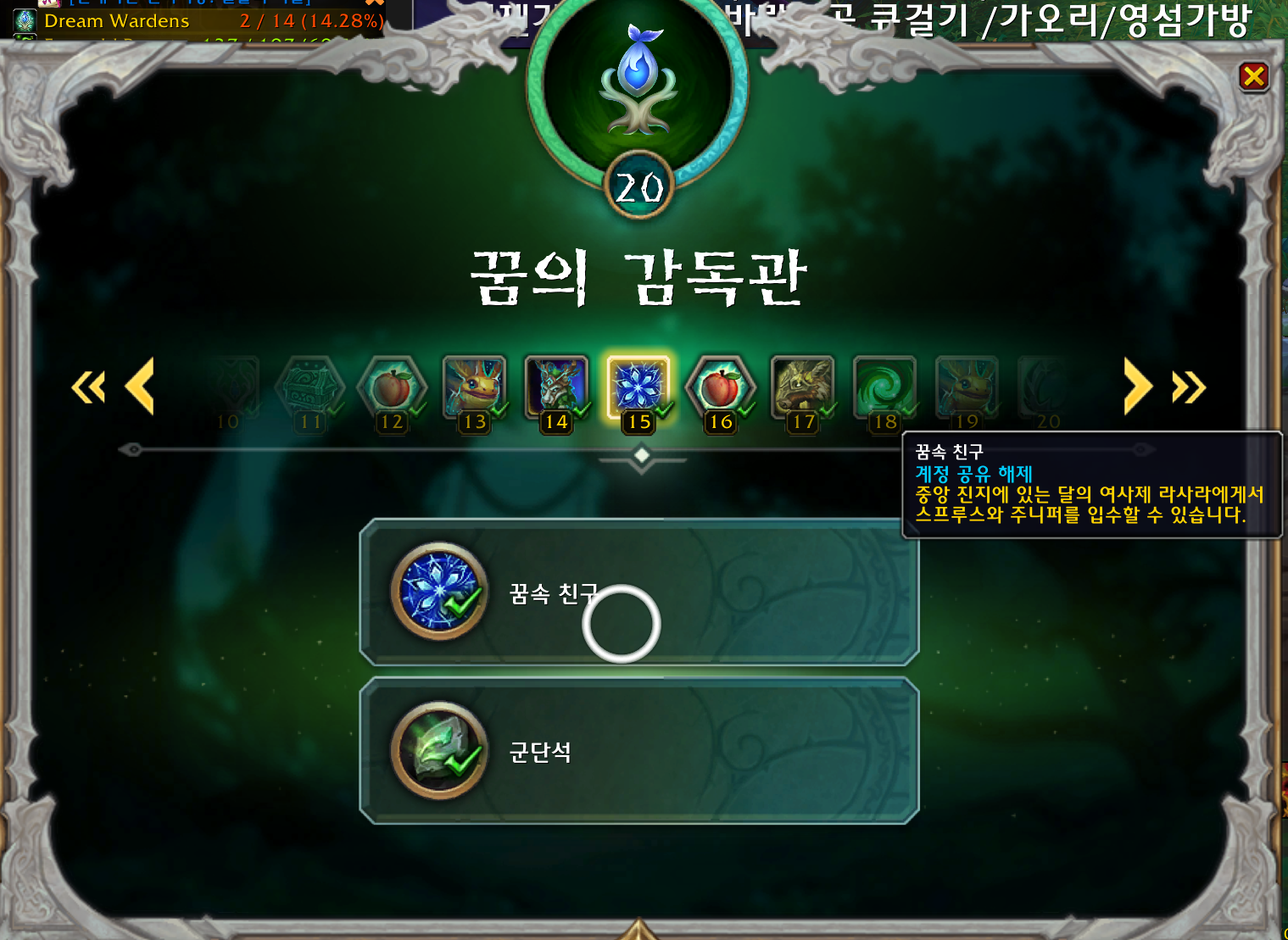 꿈의 감독관 영예 15가 되어야 합니다.