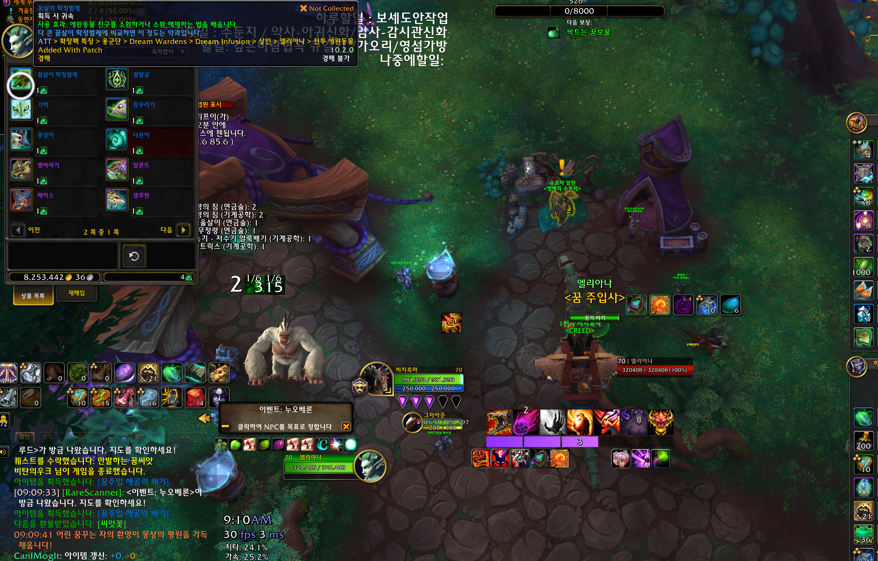 여러활동에는 만개화를 한다던지 평판1500 주간퀘를 한다던지 희귀몹을 잡는다던지 등등 대부분 활동이 게이지가 찹니다.