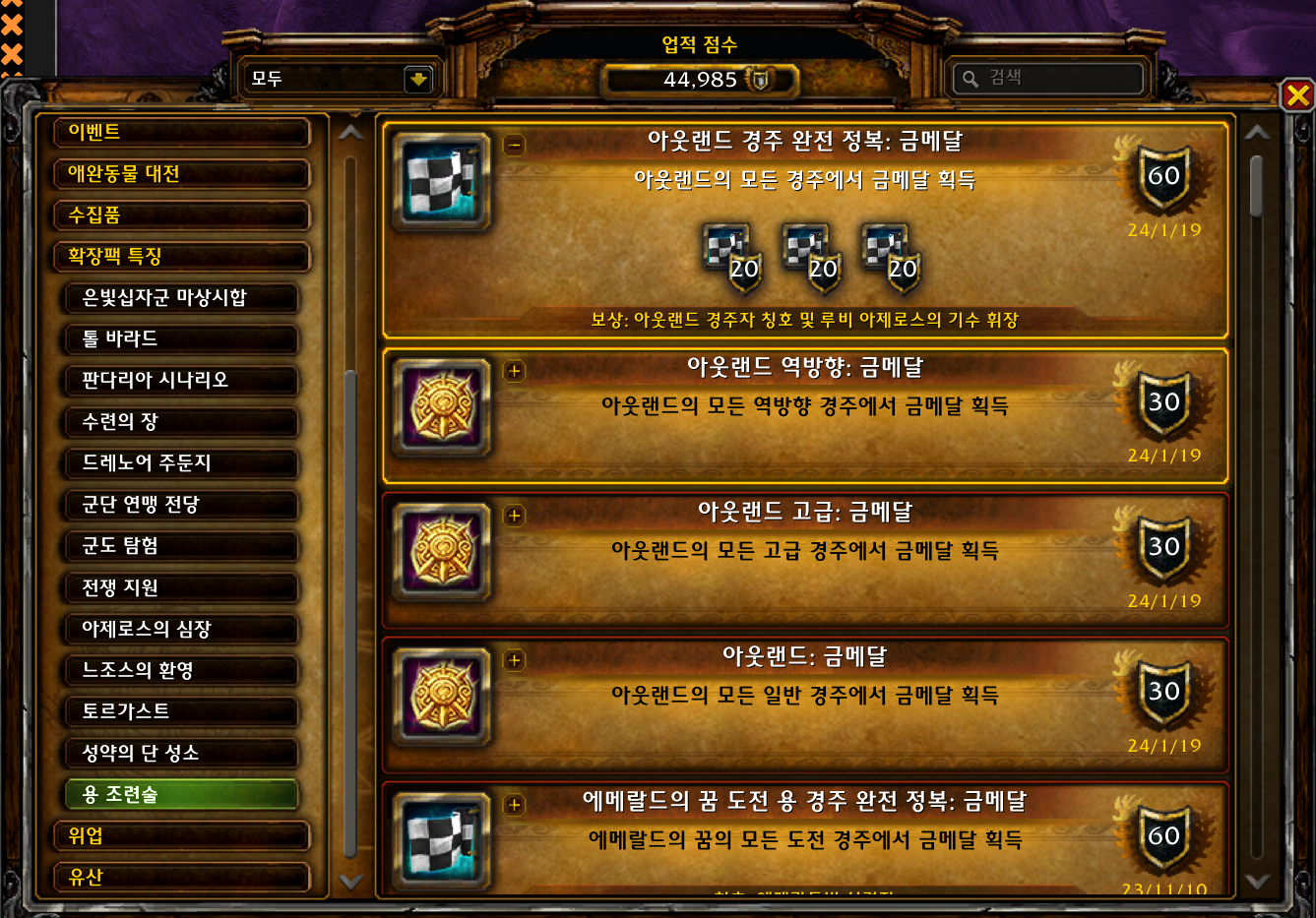 | [와우업적]아웃랜드 고급: 금메달 (2) | 2024.01.18 |