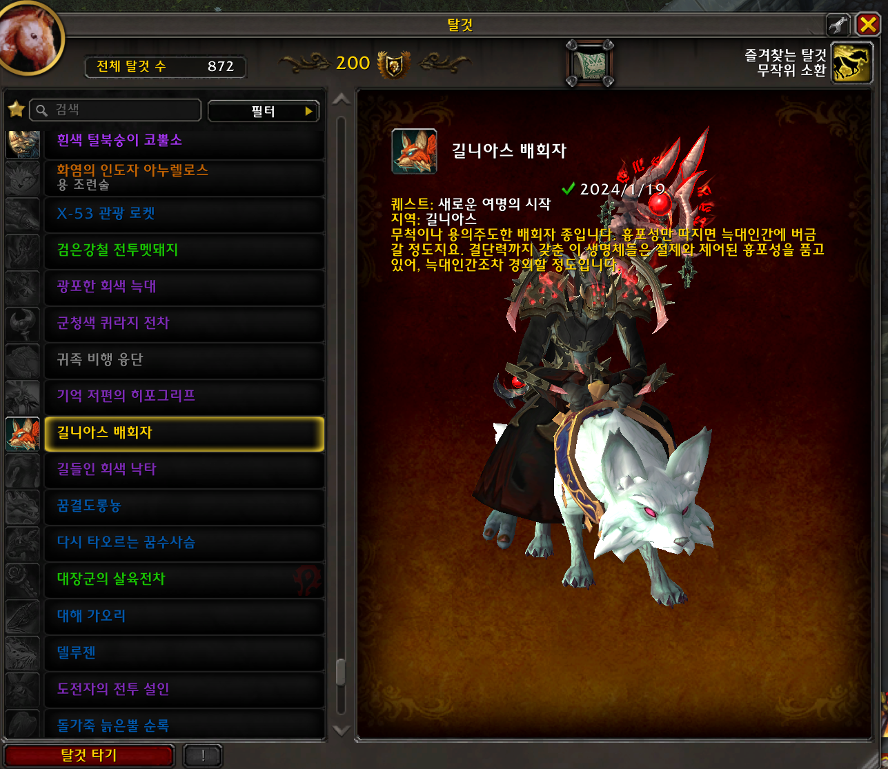 2024.01.19 길니아스 배회자 획득 872번째 탈것