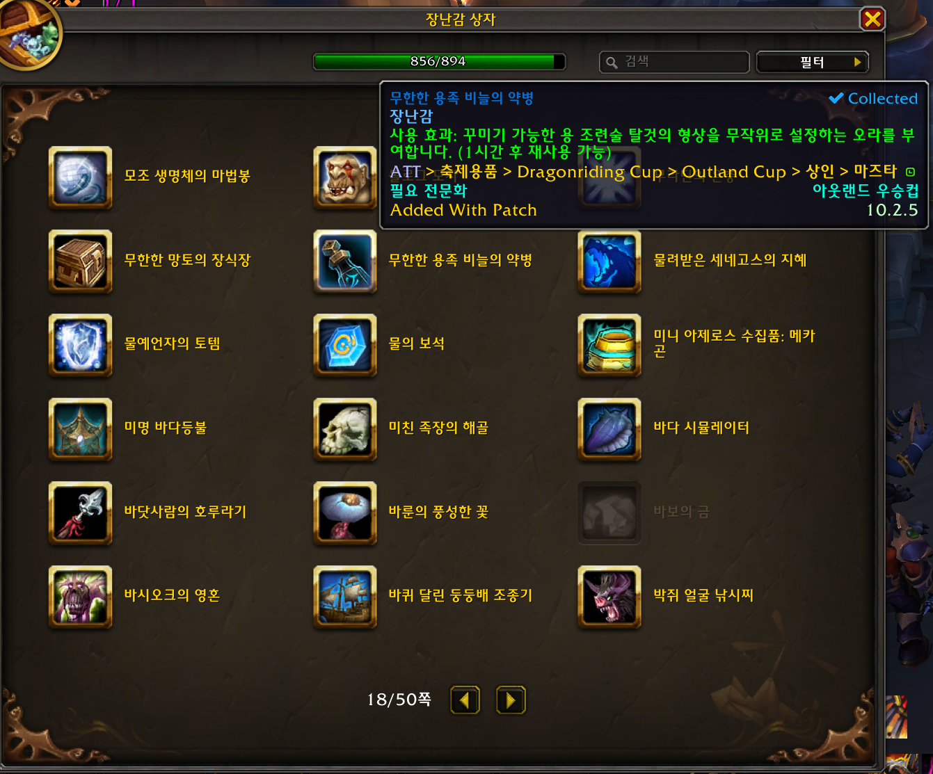 2024.01.30 무한한 용족 비늘의 약병 획득 856번째 장난감