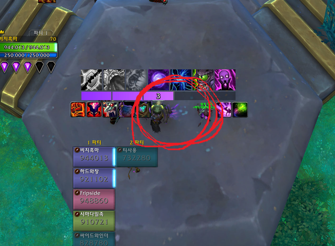 제레스 모르티스 중앙에가면 육각형이있습니다. 그 육각형 각 꼭지점에 1명씩 서면 됩니다.