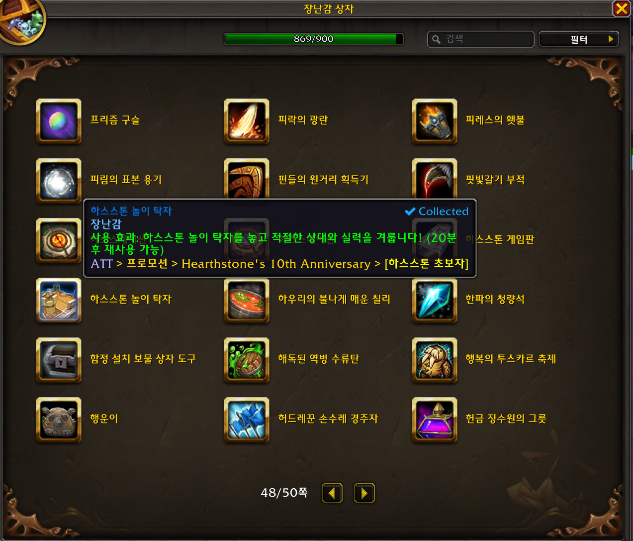 2024.03.12 하스스톤 놀이 탁자 획득 869번째 장난감