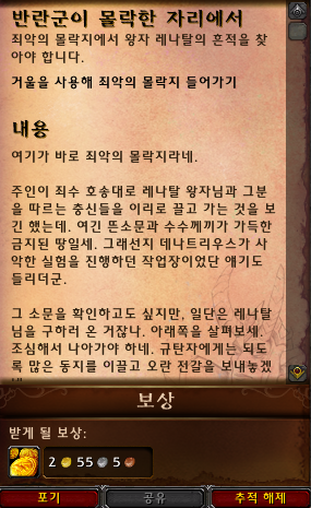 헷갈리던 퀘스트가 있어서 올립니다. 반란군이 몰락한 자리에서 라는 퀘스트인데 거울위치를 한참찾았습니다.