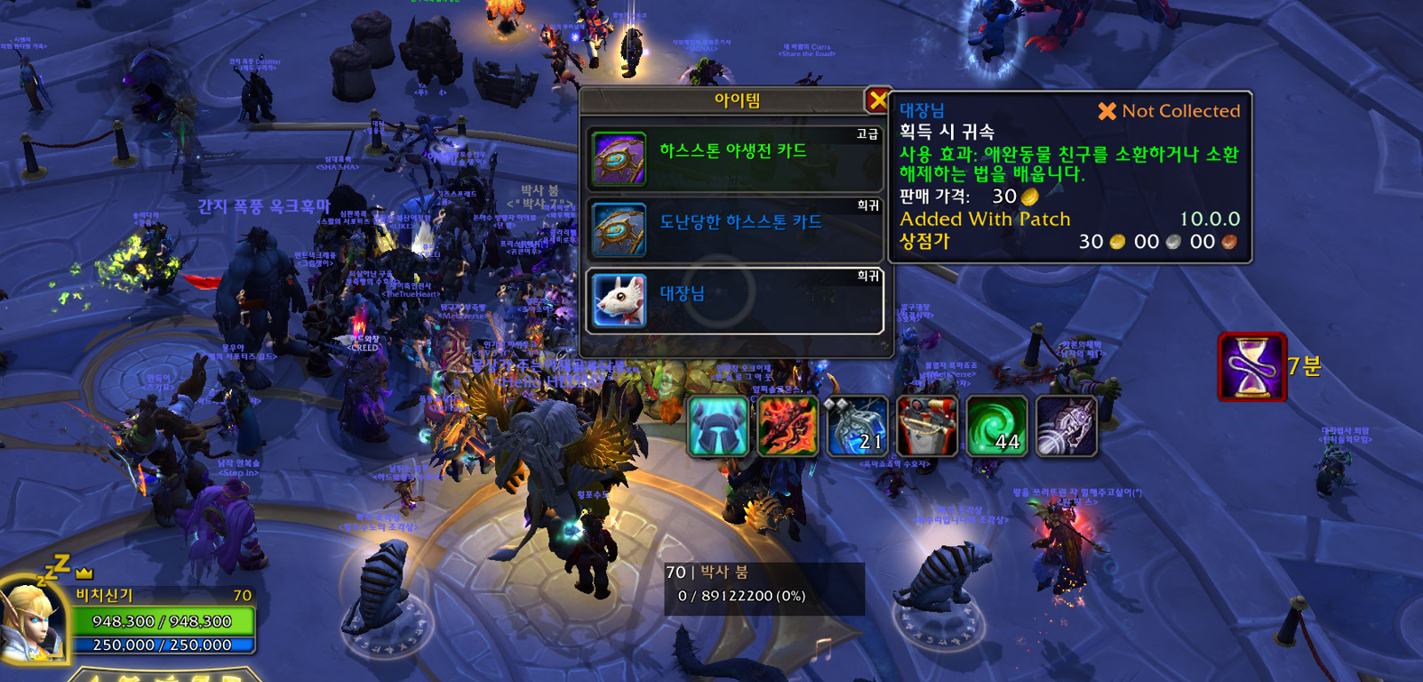 대장님 애완동물은 하스스톤 10주년 기념 이벤트 애완동물로 차원문 보스를 잡으면 확률로 획득가능합니다.
