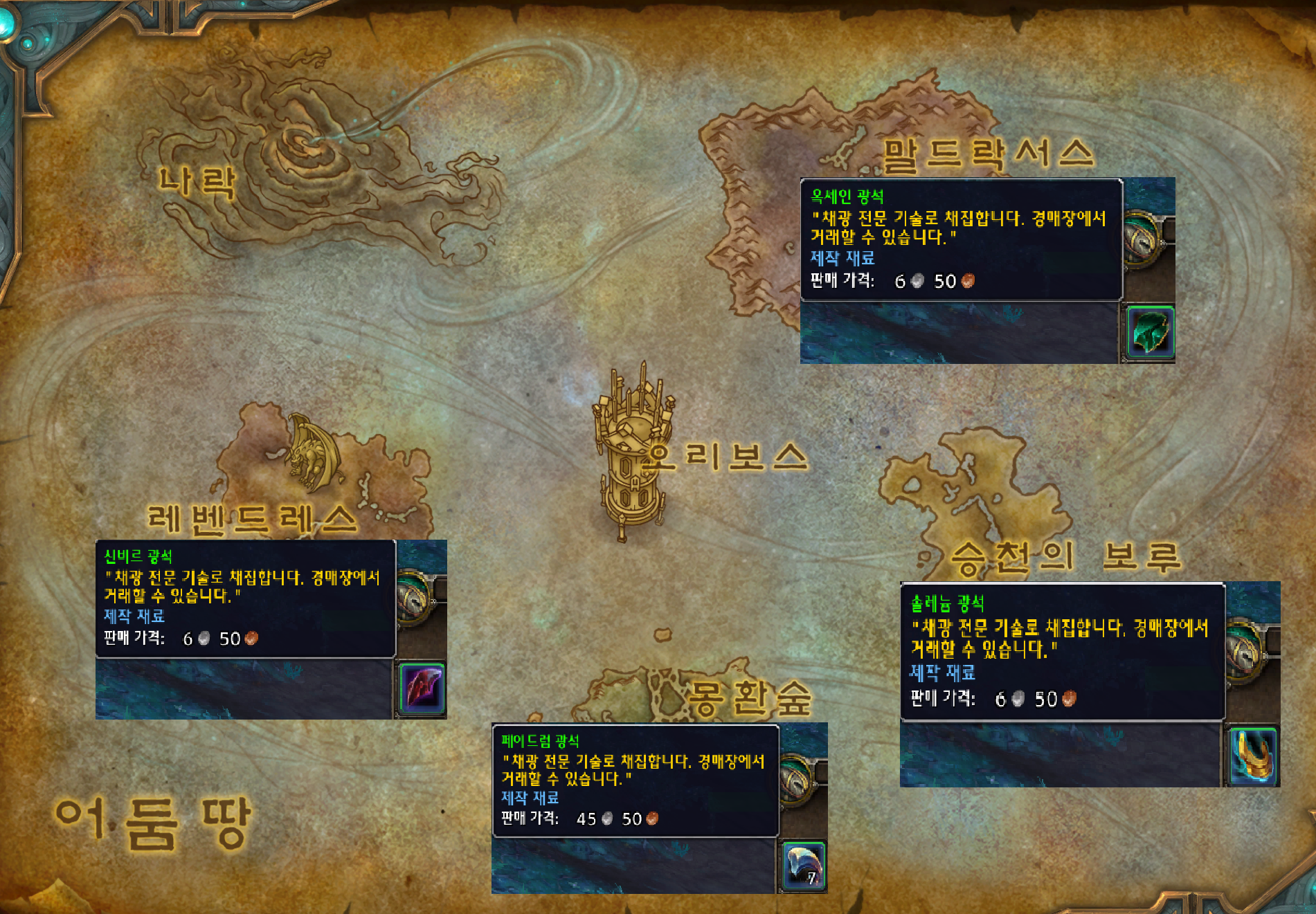 그렇기 때문에 채광으로 골드를 버실분은 엘레튬 광석과 페이드럼 광석이 같이 나오는 몽환숲에서 채광을 하시는것을 추천드립니다.