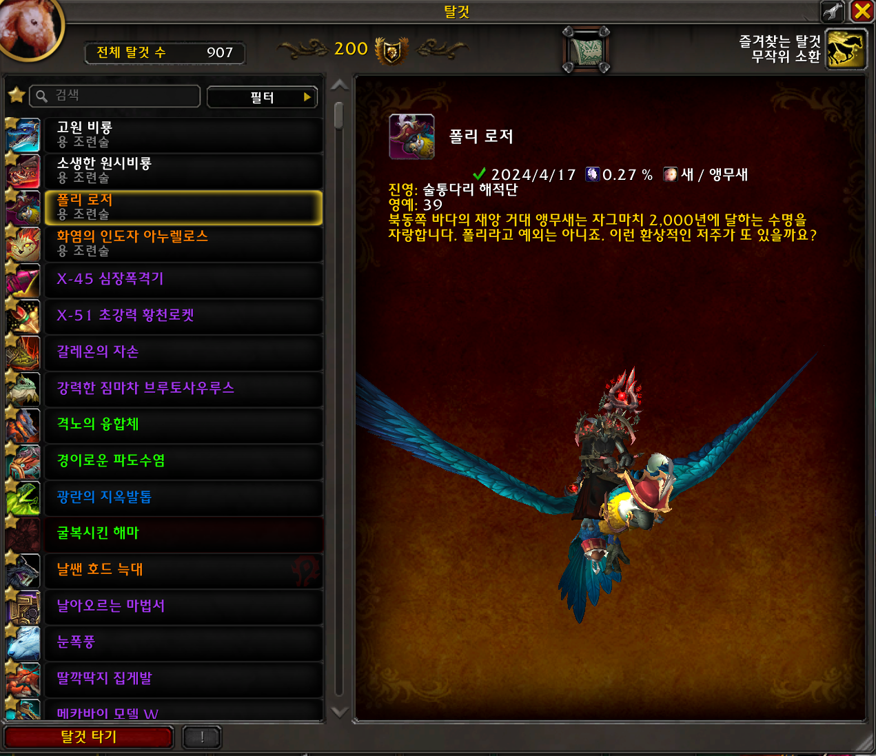 2024.04.17 폴리 로저 획득 907번째 탈것
