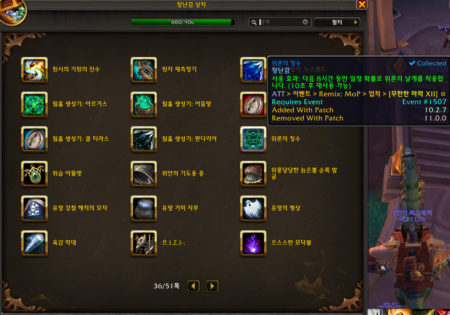 2024.05.18 위론의 정수 획득 880번째 장난감