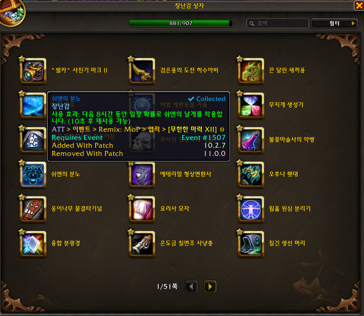 2024.05.18 쉬엔의 분노 획득 881번째 장난감