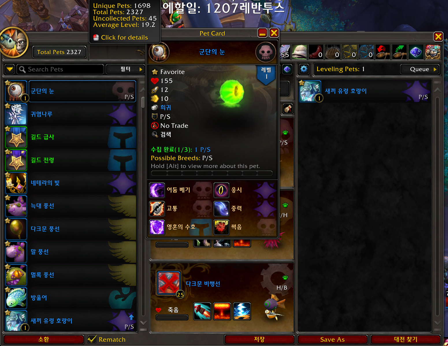 군단의 눈 애완동물은 과거 대격변 확장팩에 나온 tcg애완동물입니다.