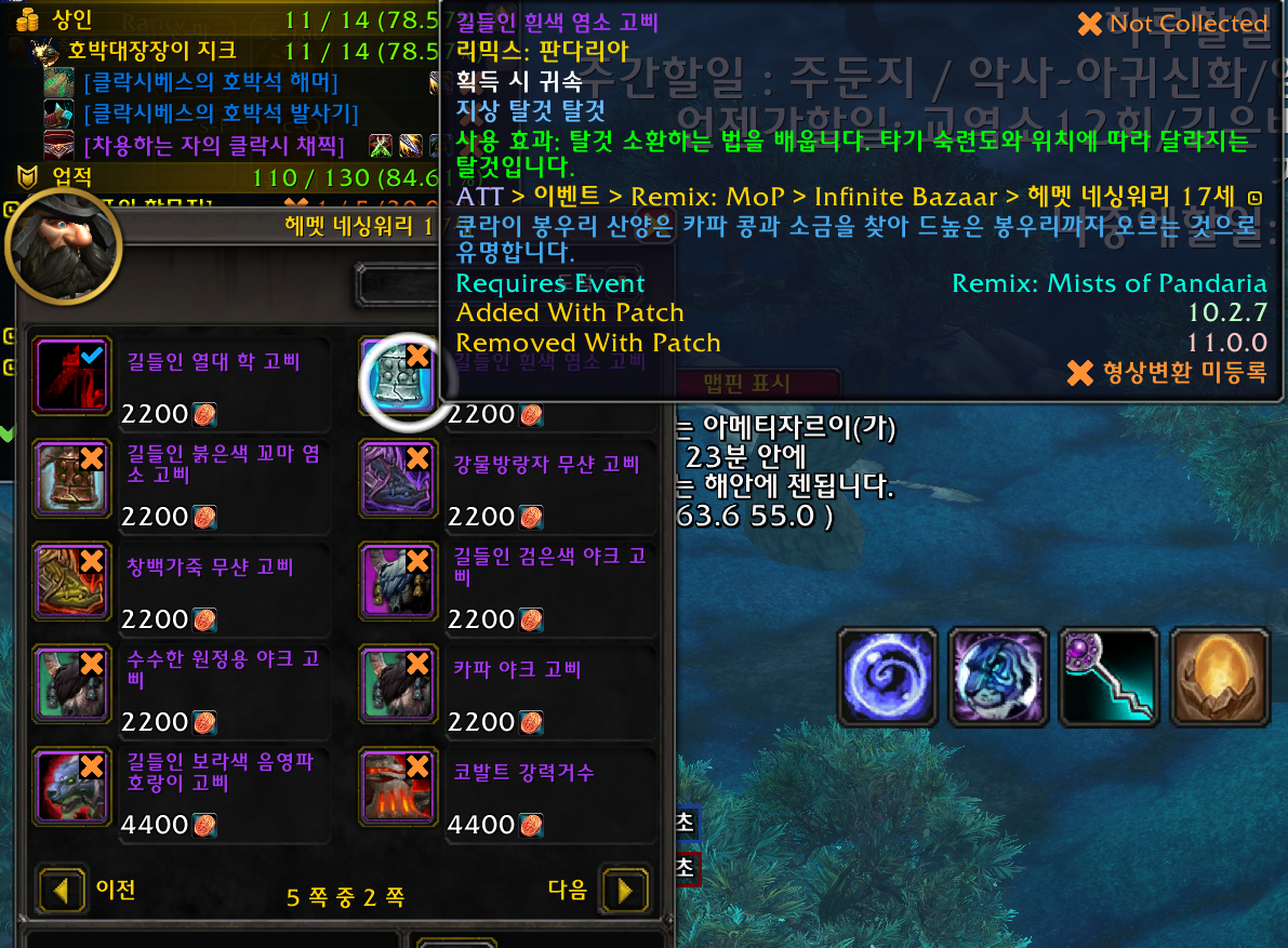 즉 기존 본섭에 있는데 판다리아 리믹스에서 구매가능한 탈것들은 뺀가격입니다.